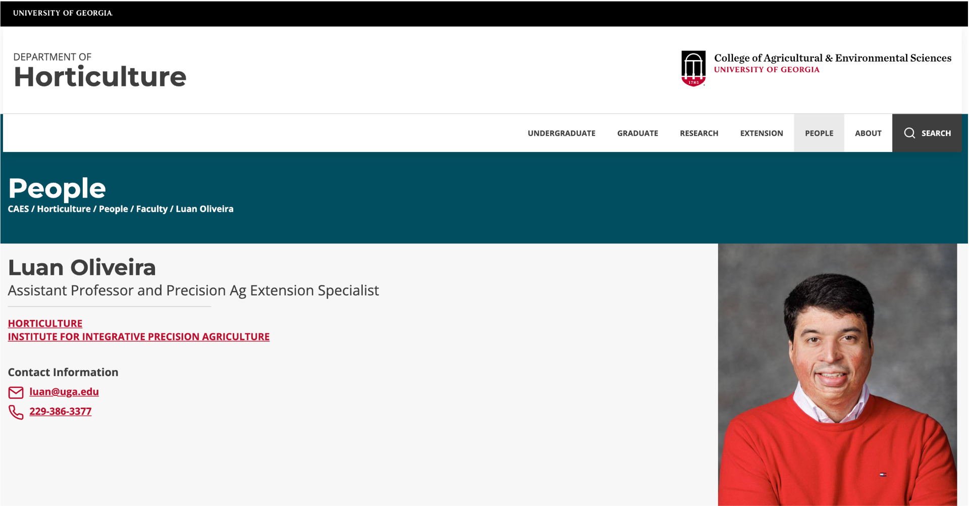 Dr. Luan Pereira de Oliveira is an Assistant Professor and Precision Agriculture Extension Specialist at the University of Georgia, based at the Tifton Campus. He holds a Ph.D. in Agronomy (Crop Production) from São Paulo State University, Brazil, and has a strong academic background in agronomic engineering and agribusiness.